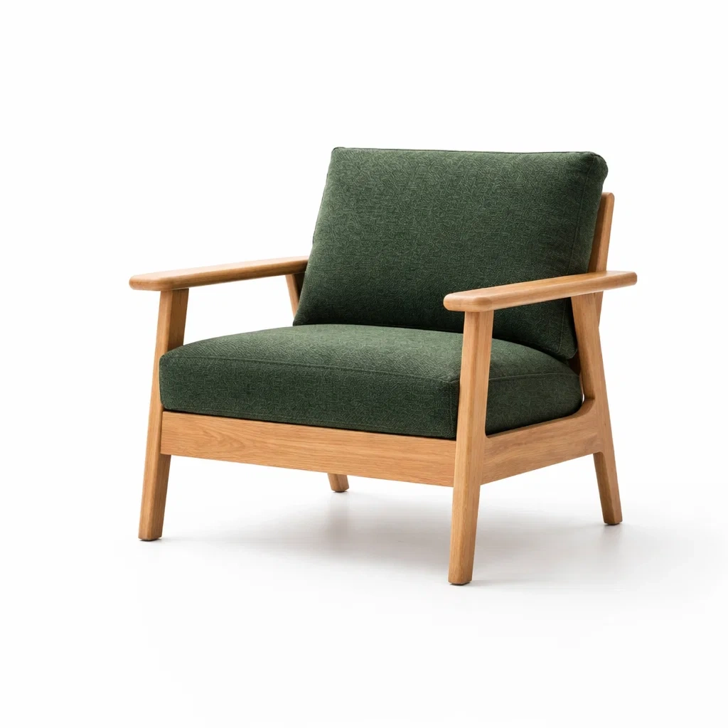 Der Sessel hat einen Rahmen aus Eichenholz. Der Bezug besteht aus einem Polyestermischgewebe. Die Maße betragen 70 cm in der Länge, 75 cm in der Breite und 80 cm in der Höhe. Die Belastbarkeit beträgt 120 kg. Das Gesamtgewicht des Sessels liegt bei 12.5 kg.